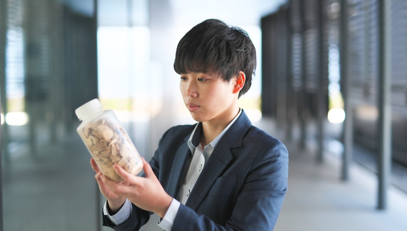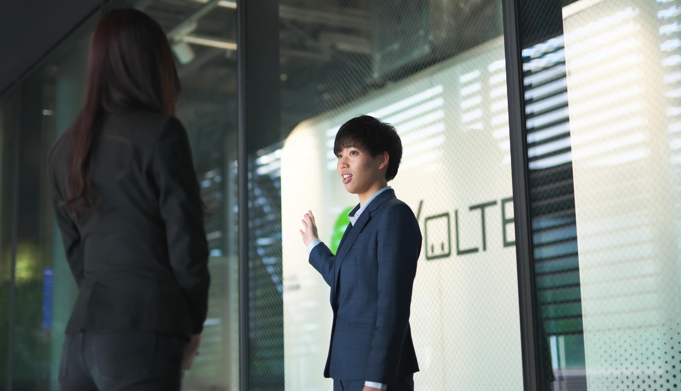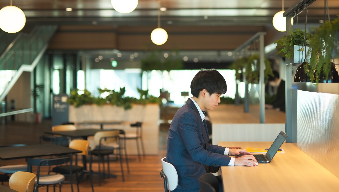 カーボンニュートラル事業開発部には30名ほどのメンバーが所属していて、営業としては私が最も若手です。新たな事業を生み出すという大きな目標の中で、知識や経験が豊富な先輩たちが担っている仕事をいつかは自分が受け継いでいくという気概を持って、未来のことを思い浮かべながら仕事をしています。