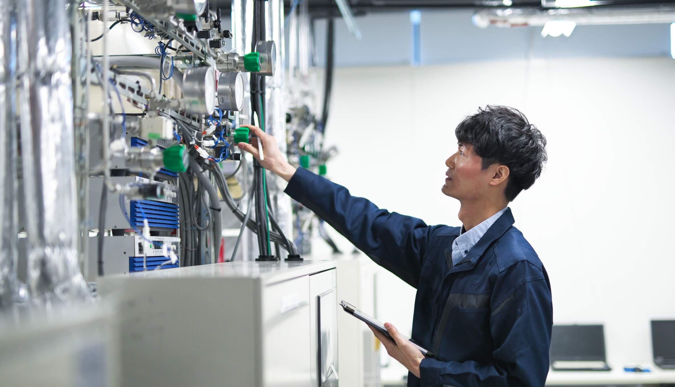 カーボンニュートラル事業開発部で水電解装置の開発を担当しています。当社は20年間水素関連の研究開発を行ってきましたが、世の中の水素への注目度には波がありました。昨今、国が主導で進めているカーボンニュートラル(二酸化炭素の排出実績ゼロ)の実現には、これまで当社が蓄積してきた知見・技術がうまく活用できると感じています。私が担当している水電解装置は水を電気分解して水素を作る装置で、自身の開発を、高砂熱学の新しい価値としてどう活用するかが私のミッションと捉えています。