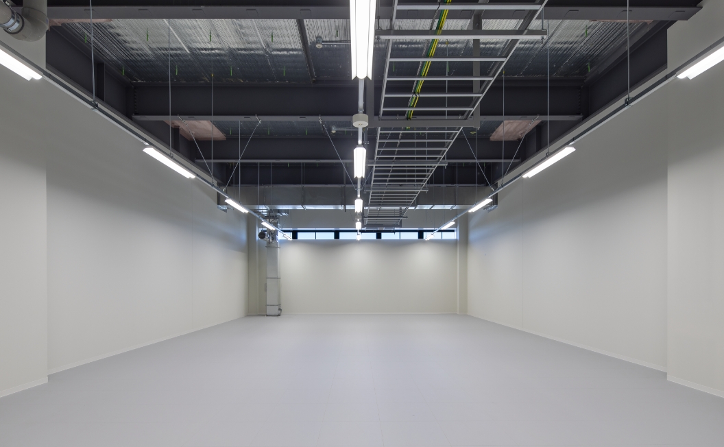 大空間の実証スペース、実験室、協創スペースを設けています。